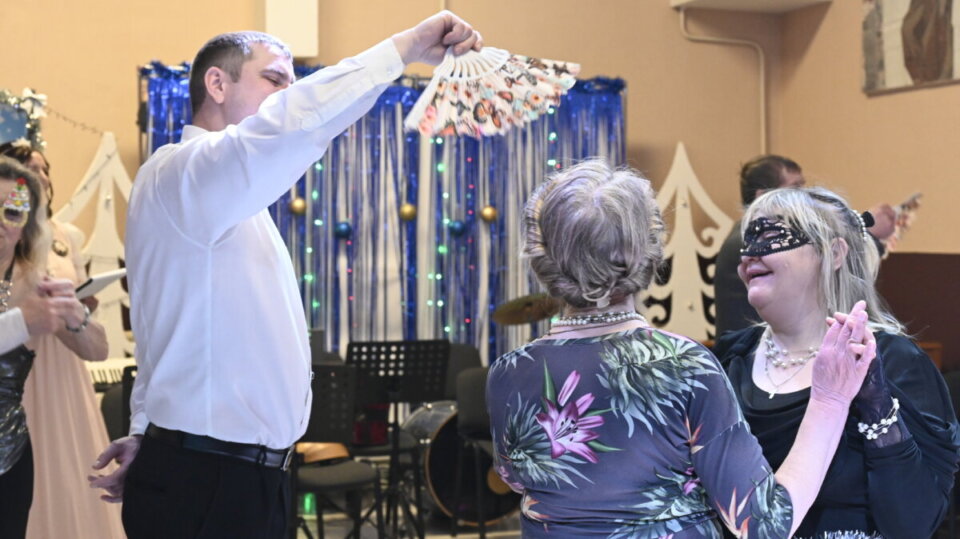 Несмотря на буйство стихии, в празднично украшенном фойе собралось немало замечательных людей, представителей «золотого возраста». Дамы в нарядных вечерних платьях и галантные кавалеры под звуки классической музыки танцевали привычные для той поры танцы – котильон, богемскую польку, менуэт, и другие. И, как и в те далёкие времена, общались и веселились от души.
