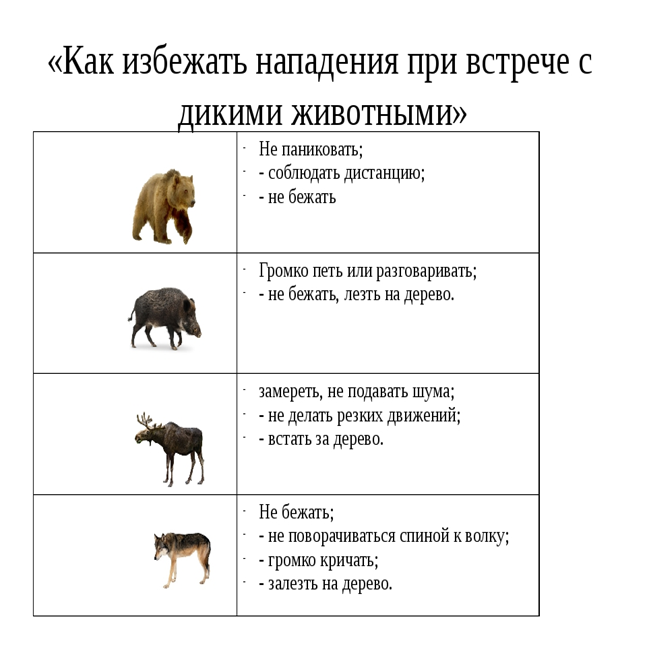 Памятка населению при встрече с дикими животными