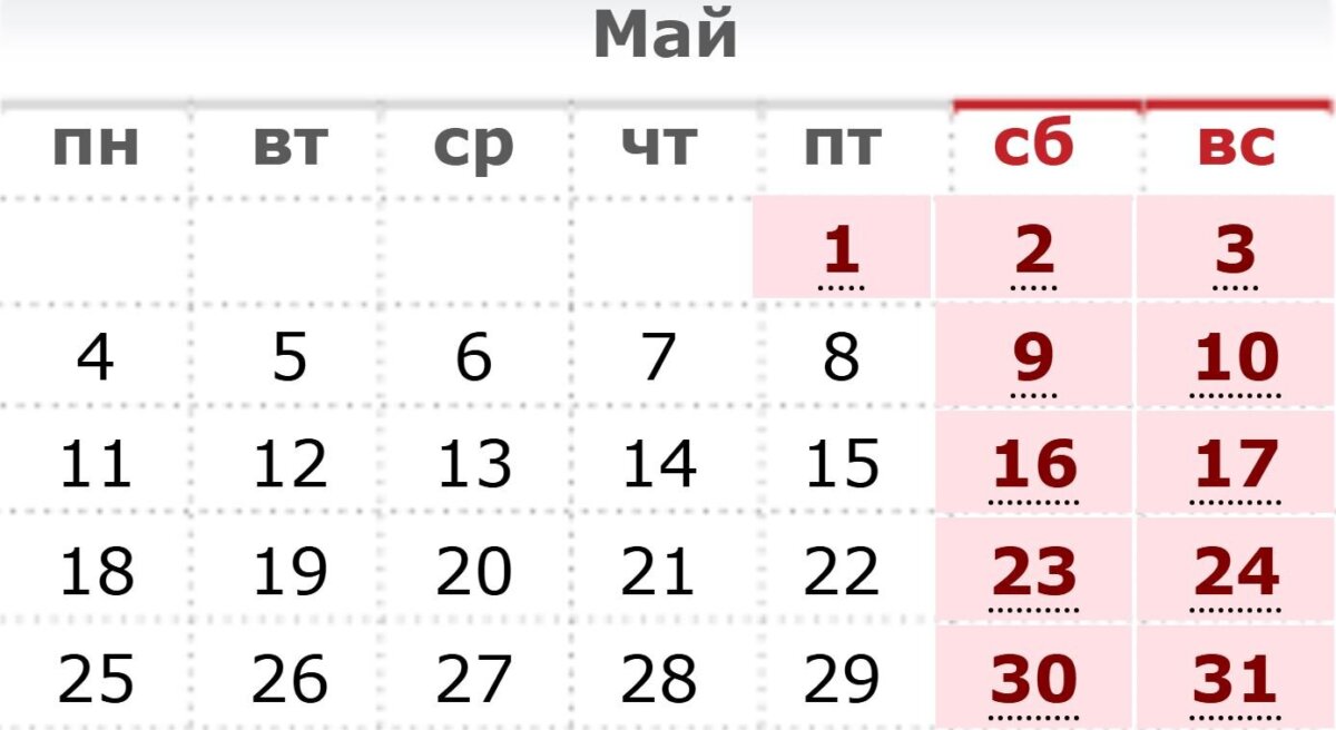 Выходными будут 1, 2 и 3 мая, и при этом никаких переносов. Отрабатывать их не нужно!