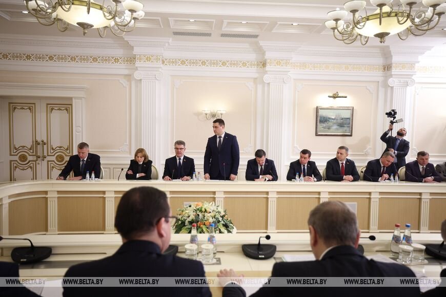 Александр Лукашенко также напомнил, что движение по основным направлениям развития было намечено на Всебелорусском народном собрании. В частности, на ВНС была принята Программа социально-экономического развития на ближайшую пятилетку. Кроме того, значительные усилия сосредоточены на обеспечении технологического суверенитета страны.