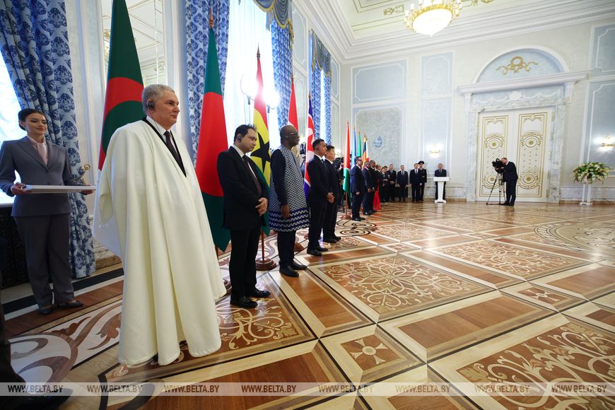 Александр Лукашенко в первую очередь поздравил послов с официальным началом дипломатической миссии в Беларуси, отметив, что впереди их ожидает интересная и нужная работа, от которой во многом будет зависеть, как сложатся отношения представляемых ими стран с Беларусью. «И пусть наши государства разделяет большое расстояние. Я уверен, что это не будет преградой», — добавил белорусский лидер.